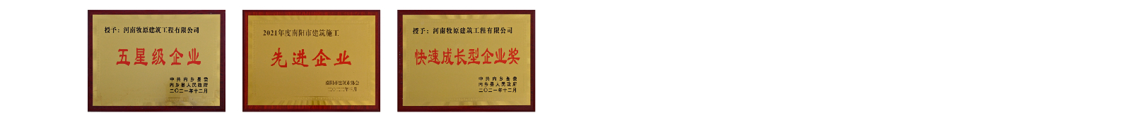 2021年,擴大經(jīng)營,快速發(fā)展,榮獲南陽市建筑施工先進單位、內鄉(xiāng)縣快速成長型企業(yè)獎、內鄉(xiāng)縣五星級企業(yè)。